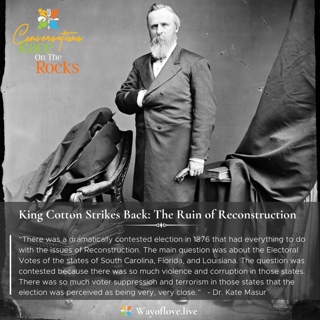 [9:01] - The election of 1876 took place after the federal refusal to step in and intervene. Much of the end of Reconstruction had already unfolded before that contested election in 1877.