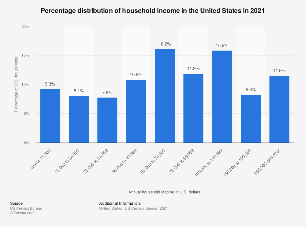 54% earn household incomes less than $50,000