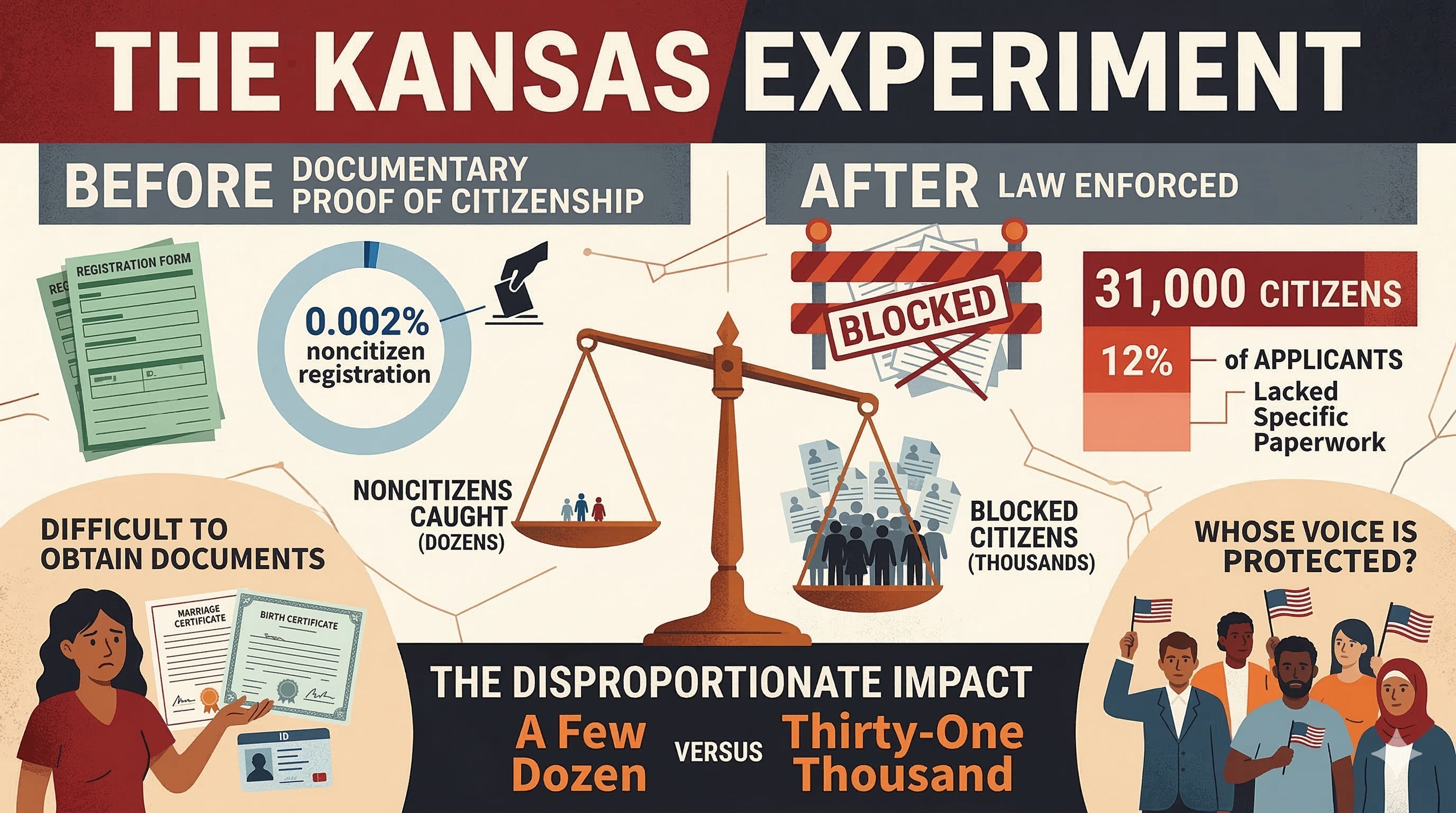 Kansas implemented documentary proof of citizenship for voter registration before it became a federal conversation. They had a real problem to solve: noncitizen voting. So they ran the experiment.