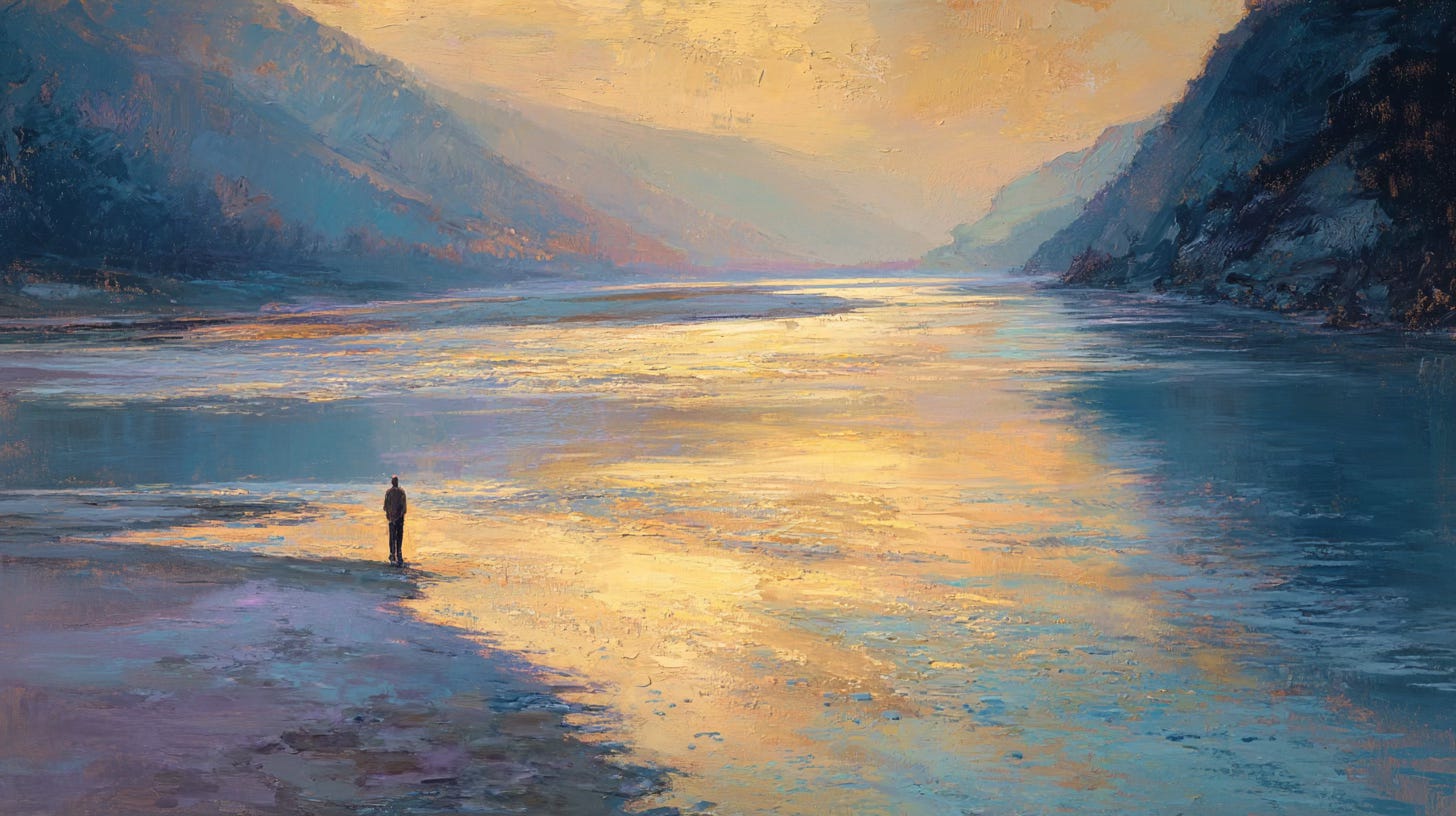 When someone lends us steadiness—a calm presence, a grounded voice, a furry head, a non-judging face—the river widens again. Breath deepens. Muscles release. Perspective returns. We become capable of connection. This is the river at the heart of human life: the flowing range within which communion is possible.